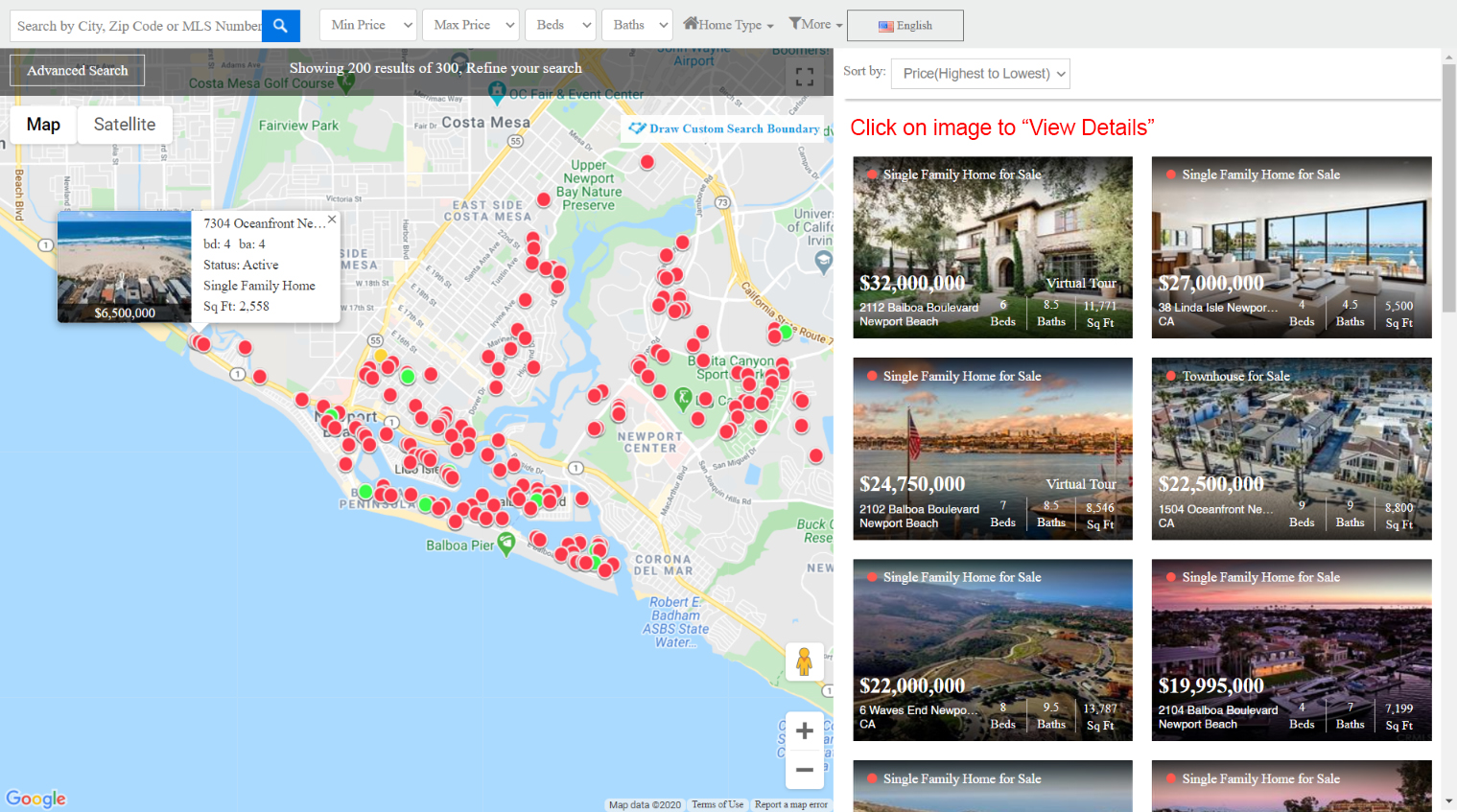 Property Results Page - Newport Beach